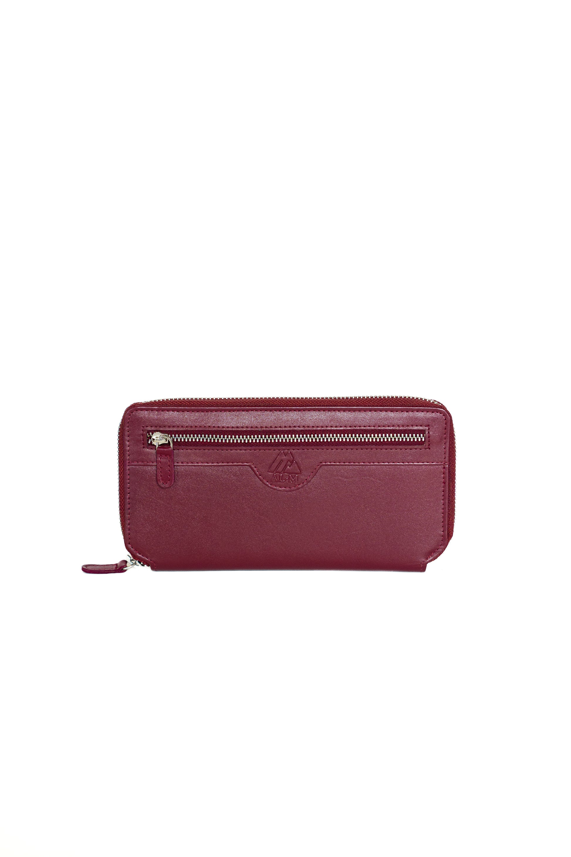 Front zip leather long wallet