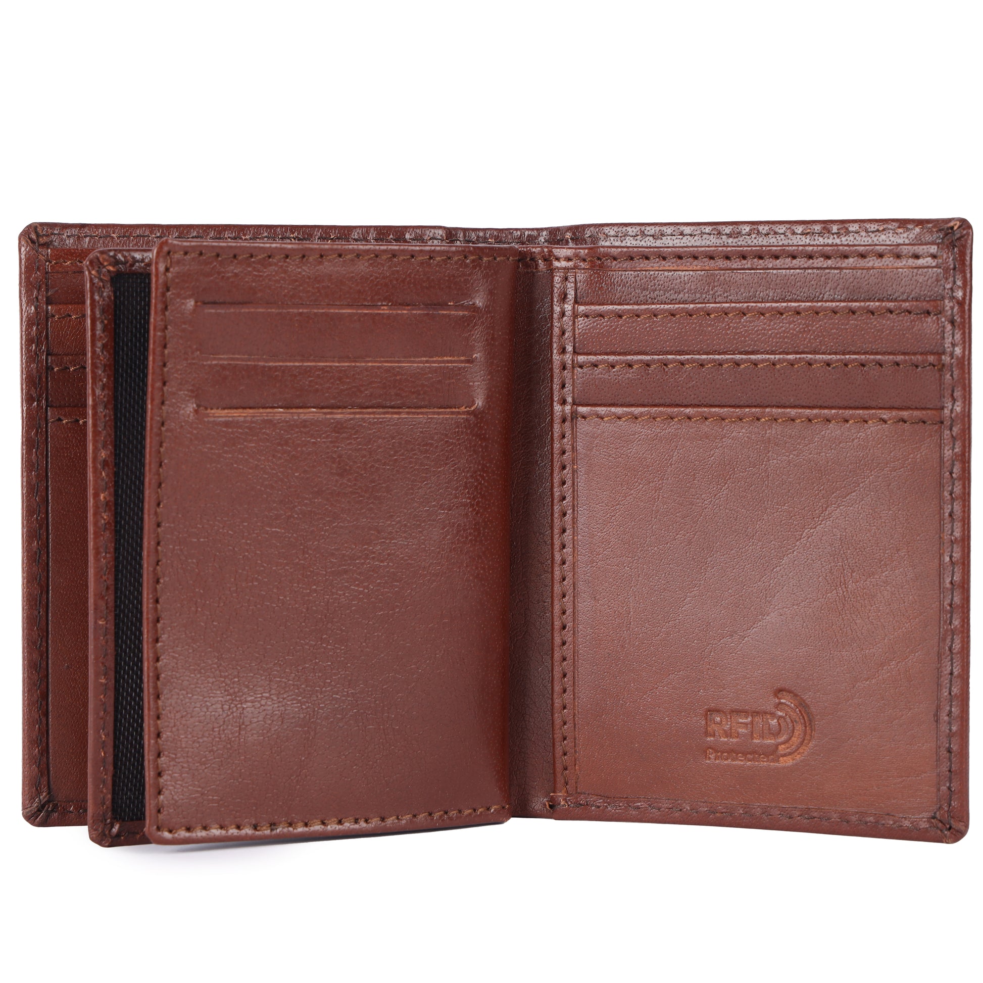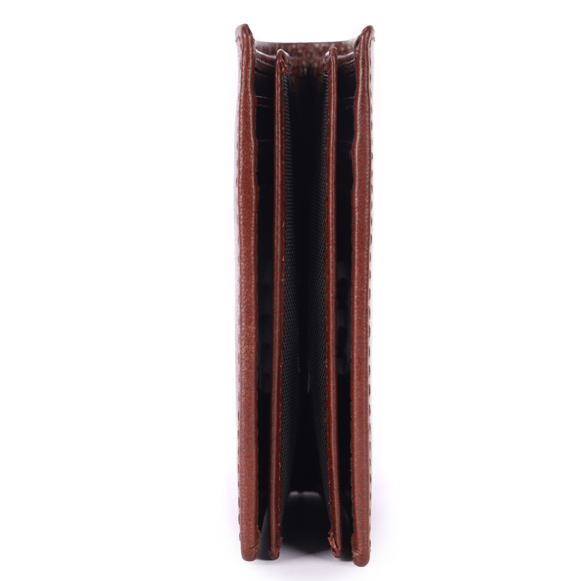 A classic bifold note case crafted from cow leather, designed for organized and streamlined everyday use. The wallet opens like a book and features two central flaps that enhance storage while maintaining a balanced profile. It includes twelve card slots and two clear ID windows for easy access, along with a dedicated bill section to keep notes neatly arranged.